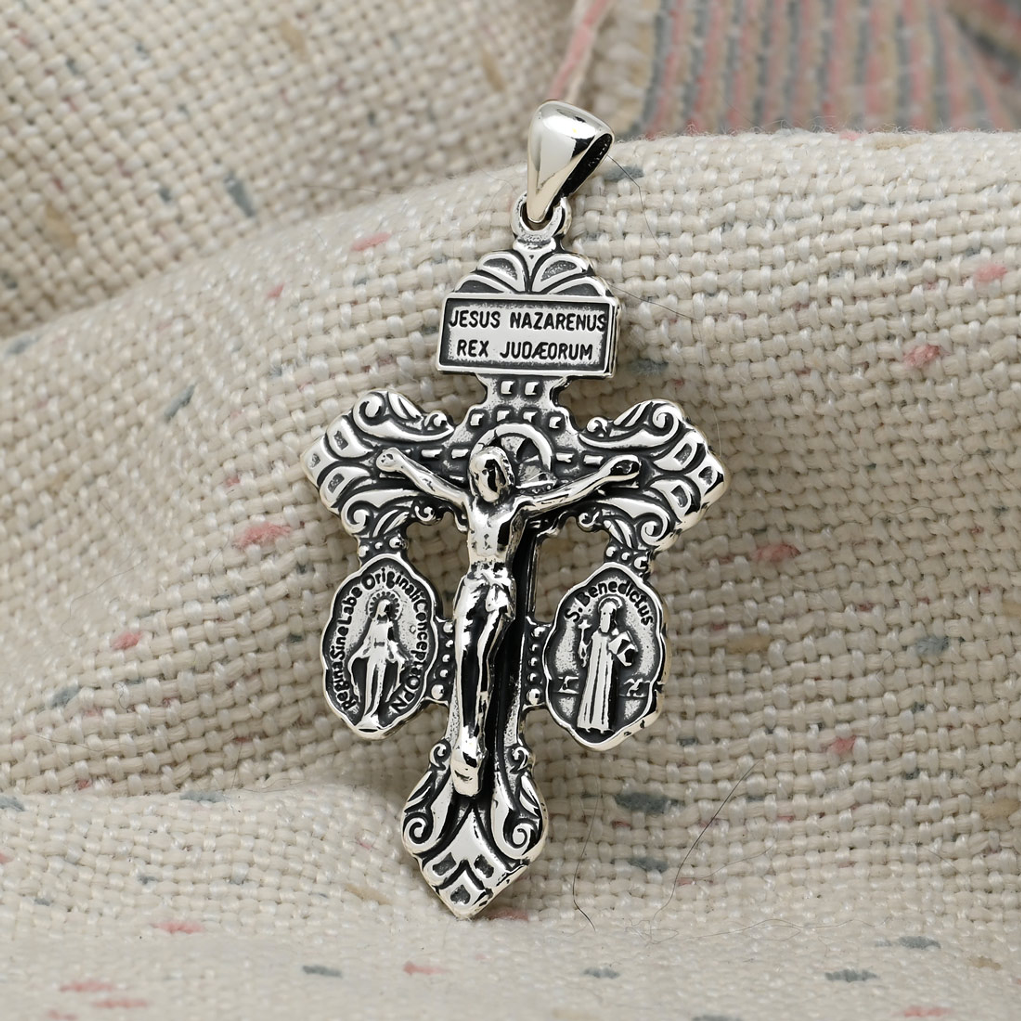Una joya imponente que combina artesanía, espiritualidad y elegancia, ideal para quienes buscan una pieza con profundo significado religioso y poder simbólico.